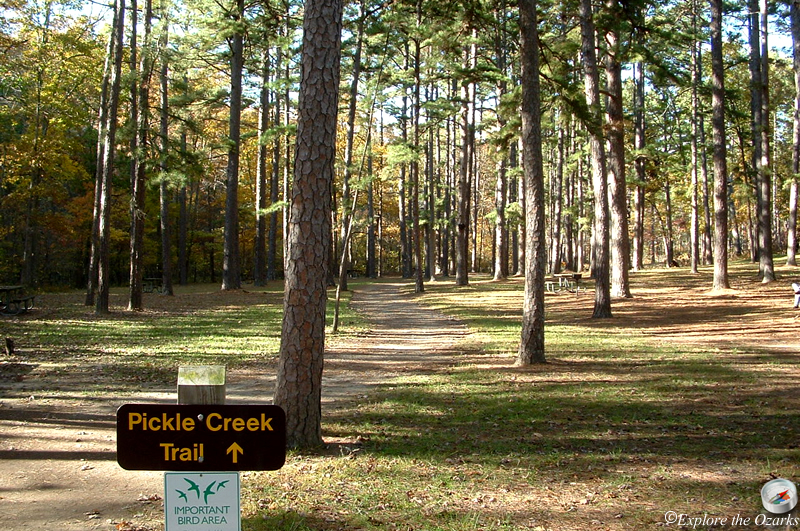 The park has now grown to over 4,950 acres, and includes the 2,880 acre Wispering Pine Wild Area. This wild area offers visitors backpacking, bird study, or nature viewing opportunities among the pine, oak, and dogwwod trees along Pickle Creek. Fifty-eight acres along Pickle Creek have been designated a state natural area, and offer one of the few places in the state where so many different rock types are exposed at the surface.